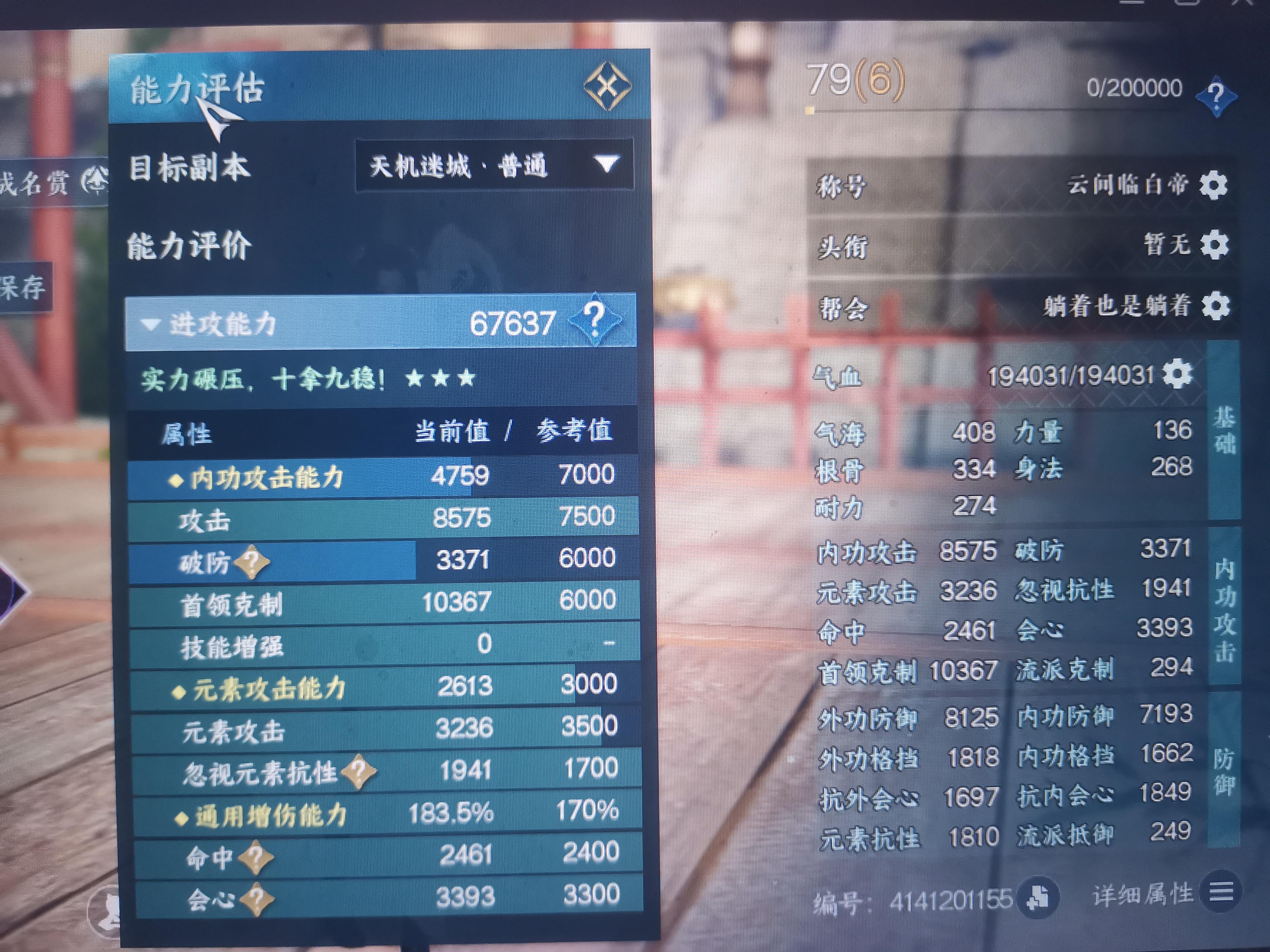 纯一键,这个秒伤,是不是攻击太低了?我是按论坛大佬配的元素忽视套,牺牲了大概1500攻击。我知道会心也有点低,没有好内功。接下来再弄的话就专门赌内功?