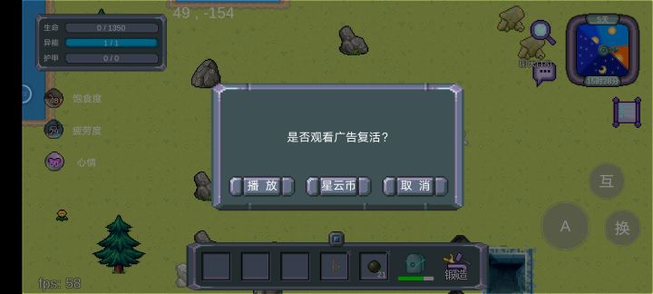 死了之后也没法看广告,星云币也用完了,而且再次打开还是死亡状态,这没法玩了吗?