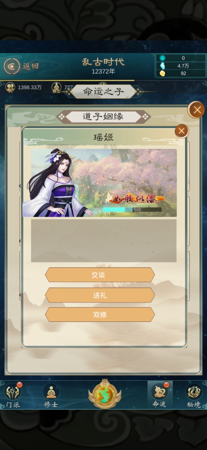 我姻缘那两个好不容易点到200好感度双修的时候说涨了几百万经验,实际一点都没有涨什么情况???