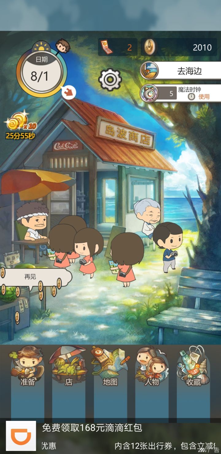 现在这个游戏网上还能搜的到,说一下我本人的一些经验。首先如果2.02版本抽不了奖,就去玩1.3版本。内容是一样的。1.0版本是没有时光胶囊内容的。可以通过调整手机时间加速游戏,往后调10分钟客人就能聚满,调两小时就能度过一天。当你把时间回调到正确的(也就是往早调),可以用魔法时钟跳天,跳完了游戏时间就会再同步在现在的时间(更早的时间)。调时间这事操作操作也就明白了。很多对话和剧情,都要在姐姐