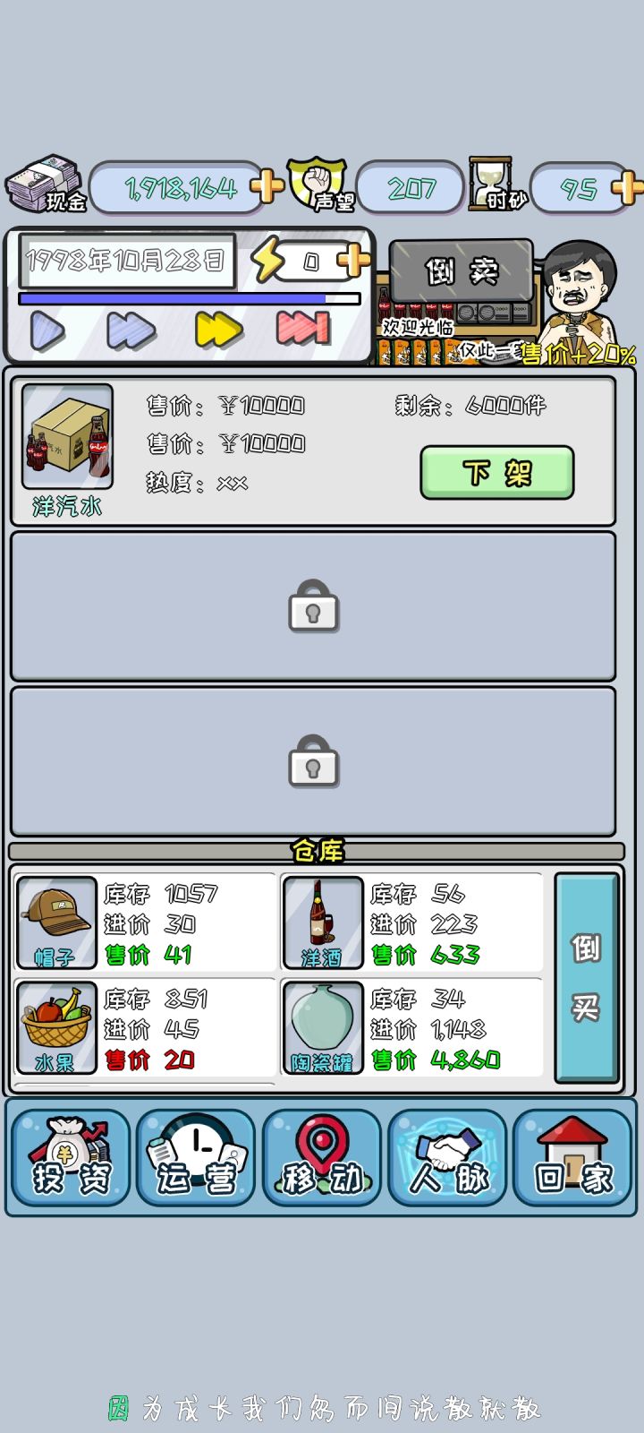 我退出来重新进去,就发现游戏叫我重新取个名字,然后虽然钱还是原来的钱,但是投资等下许多按钮按不了了测试版不太稳定具体上图,各位看一下😂