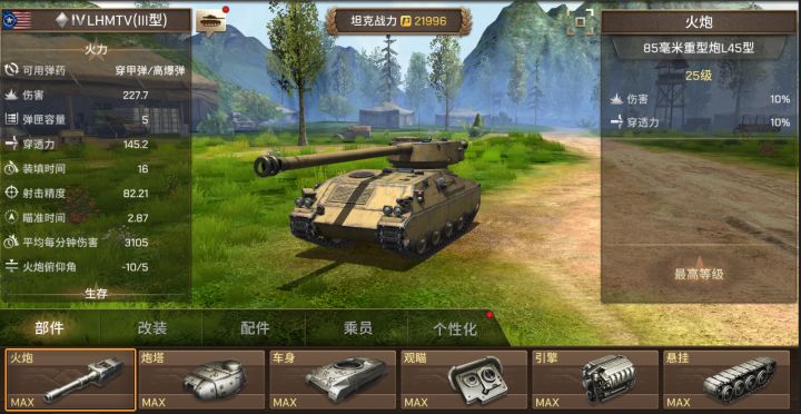 M103重型坦克于冷战期间服役于美国陆军和海军陆战队,由密歇根州的底特律兵工厂生产,第一辆坦克于1957年交付。M103是美国第二款重型坦克,曾经是美军吨位最重的坦克。类型:重坦级别:Ⅳ级获取方式:55级解锁价格:4800000金币三改满级属性