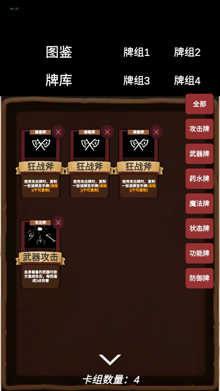 我牌库切换到卡组2,狂战斧显示1/1