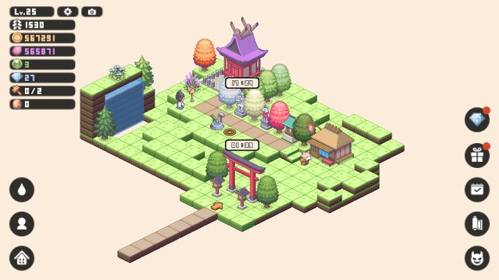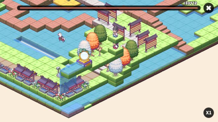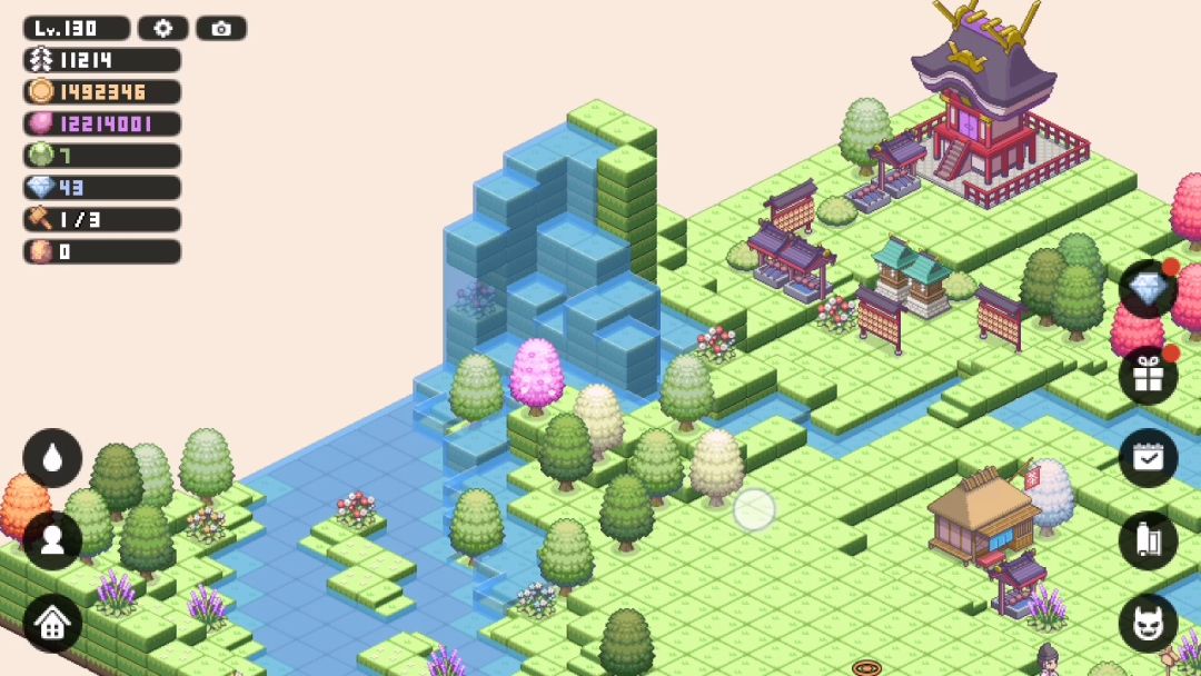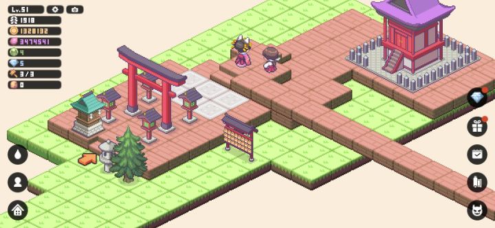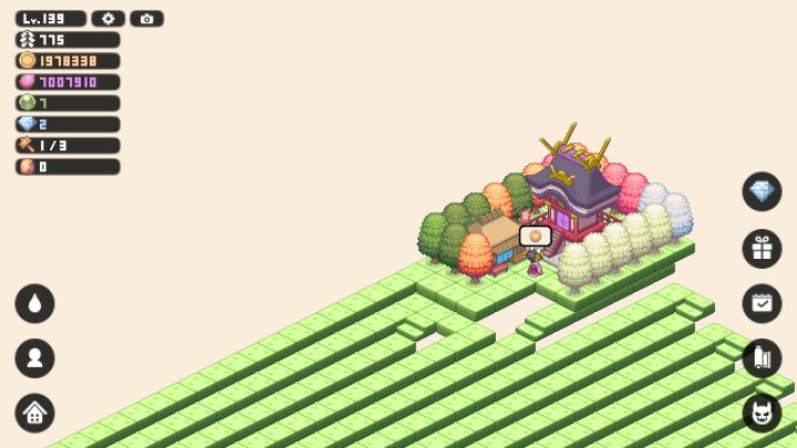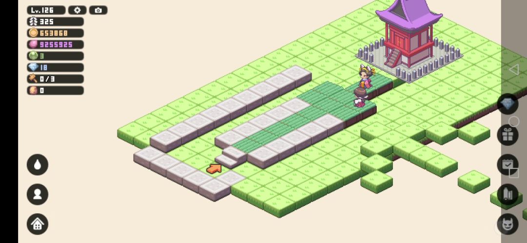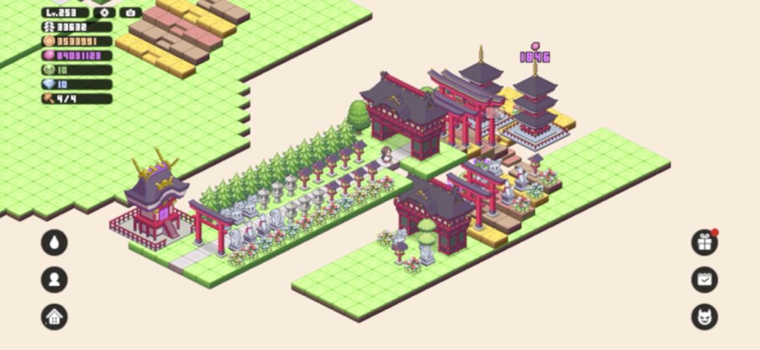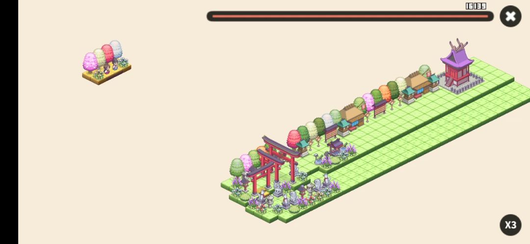 反复优化,最后实在没有优化空间了,剩一个鸟居怎么也塞不进多倍区了,一个大神门等于三个鸟居,这里3倍区总共有7个鸟居的位置+两个三重门,2倍区有5个鸟居的位置+8个R级建筑,应该是极限了,大家照着这个一定能前进几关。下面有个狮子戴了两顶绿帽子,是防止小怪掉狮子头上。