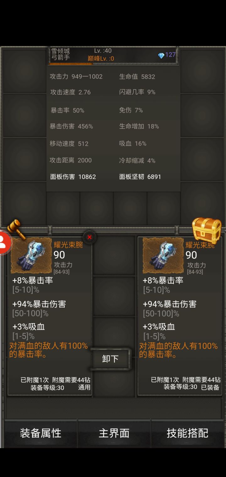 你这个属性是装饰吧?满血怪射上去连个暴击都看不到还是红字