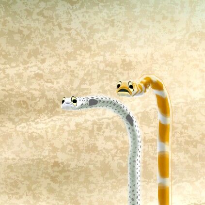 哇哦,第三天了,它们才不再是直立着了,终于是有其他动作了,今天去看,怎么小青跟花斑黏在一起了nei,希望这个游戏养成后的花园鳗可以生崽崽
