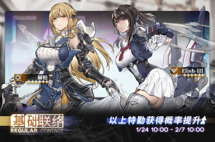 ▼联络起止时间2024/01/24 10:00~2024/02/07 10:00 ▼联络UP特勤★★★★★★:赫柏(狙击)、Elish-III(哨兵)★★★★★:新星(突击)、特蕾莎(狙击)※可在游戏内点击联络界面右下方【查看详情】按钮,查询更多联络信息。————————▼游戏下载游戏官网:www.galaxy-fantasy.com游戏公众号:银河境界线官方Q群:106304