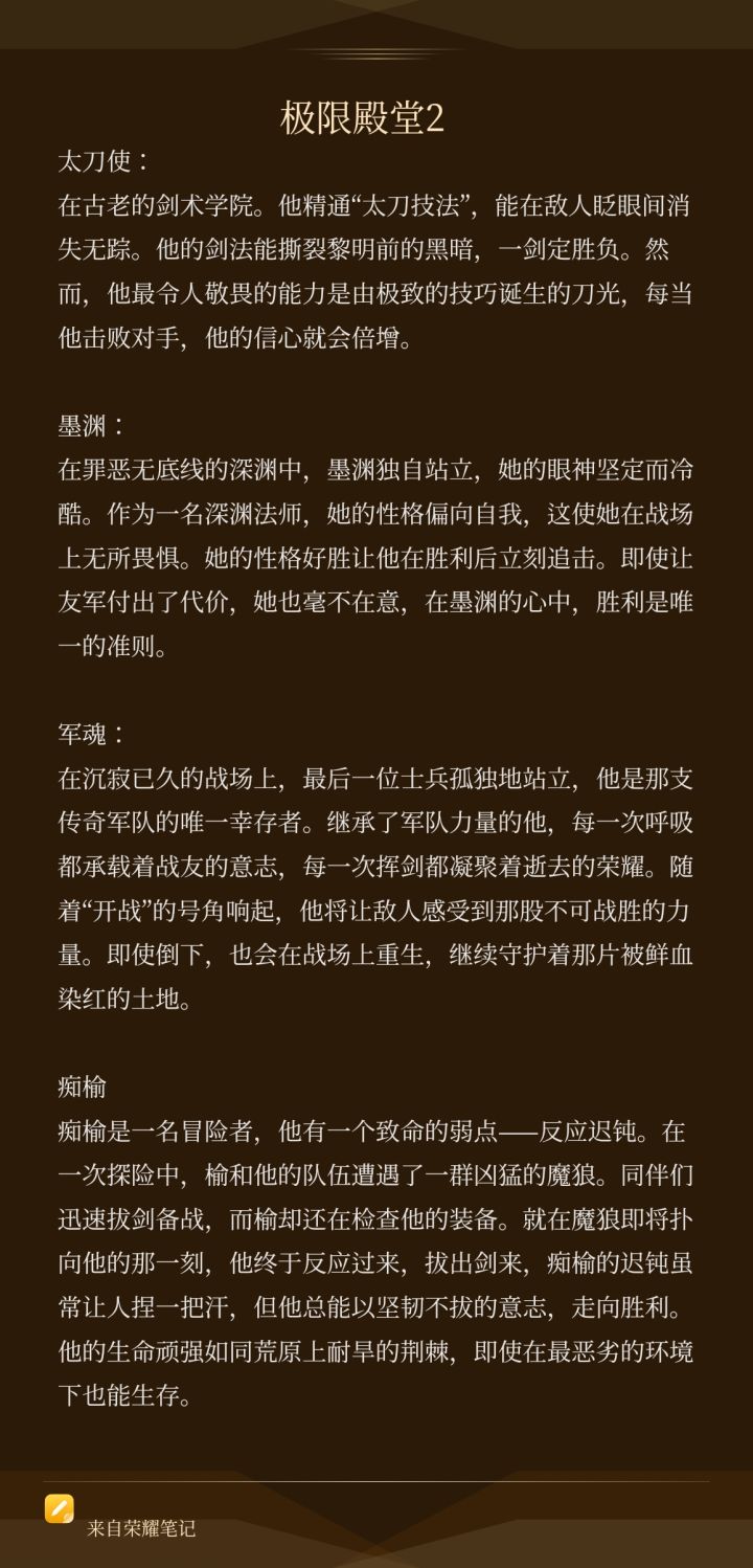 痴榆 (极限殿堂系列)2费 1-2距离 5节拍 520(166)血量 78(25)攻击力 战士1. 后知后觉:所有伤害延后2s触发,攻击造成200%攻击力伤害,对伤害自己的单位额外造成50%攻击力伤害2. 大心脏:清空血量后延迟离场,造成两次伤害后使目标离场则恢复20%总血量,反之离场3. 痴心妄想:当一个单位对自身造成超过60%总血量,在1-6距离内尽可能传送至该单位面前军魂 (极限殿