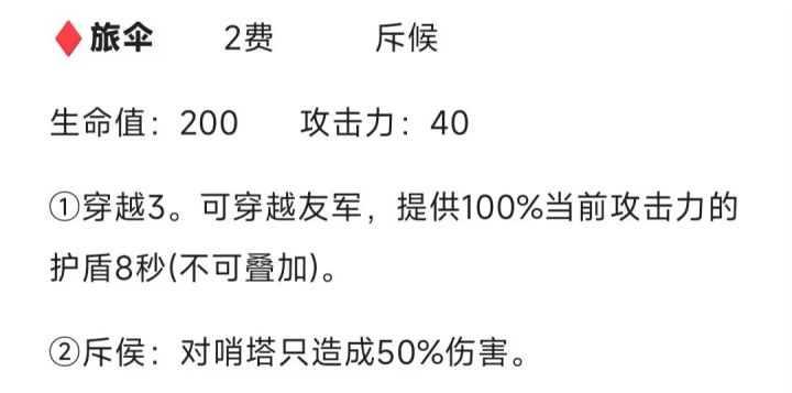 提示:攻击血量为12级基础属性,括号内为1级基础属性,有误差,*1.1^(12)*道路0费4能级 双塔之间占领敌方区域不包含攻击范围的格子,持续4s选择1费 1-1距离 3节拍 360(115)血量 81(26)攻击 战士1. 抉择:前方三格内目标自身当前≤20%总血量的单位被吞噬,获得目标30%总血量和攻击,上限为自身的150%(所有单位皆可吞噬)2. 代价:第一次抉择开始,在场时