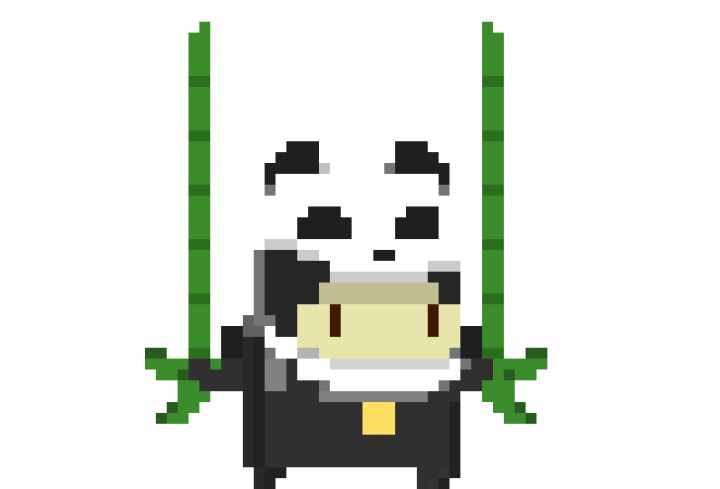 不知道从哪来的两根竹子,锋如利剑。威风凛凛的盖塔,像是去演武侠剧里的熊猫大侠,还是去动物园卖萌打杂?