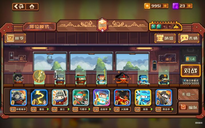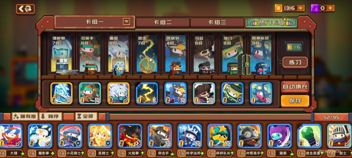 从s1退游刚回归,还是喜欢盖亚阵容盖亚:3费肉盾,虽然被削,复活机制还是很强悍弓箭手:1费射手,最好用的卡牌,必带雷击:1费法术牌,用来解射手或者法师,或补刀城门:2费血量最多的守卫牌,抗击退镭射炮:2费射手,全图炮抛接球:1费射手,抛接球攻速快,乌兹的上位选择一刀:幻彩品质,虽然3费,但一穿5太好用了,哪怕前方是我方单位也能穿过去,阵容更灵活了防爆队友:一费,减少百分70伤害,明