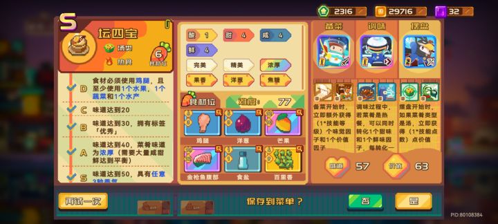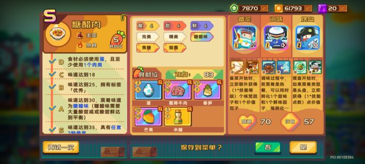 芒果9个螃蟹11只火腿13个罗勒8个春笋6个霜降牛肉7个金枪鱼腹部10个#砰砰军团 #游戏日常