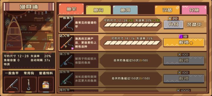 钓鱼小贴士渔场解锁后,会自带一般鱼竿,常用钩,普通饵料。而这三种渔具直接影响能钓到哪些鱼/生物/垃圾。一、鱼竿鱼竿主要限制可钓到的鱼/生物的尺寸,但在一开始鱼图鉴还未显示时,鱼的尺寸范围是未知的,仅可通过图鉴中的占格大小来区分。随着垂钓次数的增多,图鉴中的长度记录也会被新纪录刷新(即使已经达到金冠银冠,最大最小的数值依旧会刷新,由此可推断金冠银冠的要求为范围数值),图鉴中会显示每个生物的最