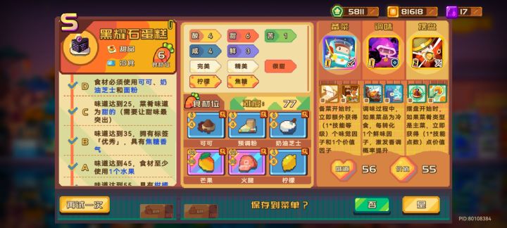新出的食谱真的难搞,个人感觉最好出S的就是水晶牛肉沙拉。。。做黄玉酥的话梦魇得拉满级,顺带一提,柑橘香气可以用柠檬香代替,以前看到别人说,亲测了一下发现真的可以,就像图里的黑曜石蛋糕那样
