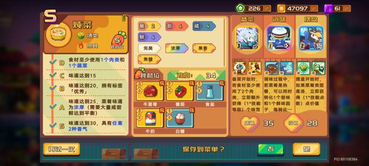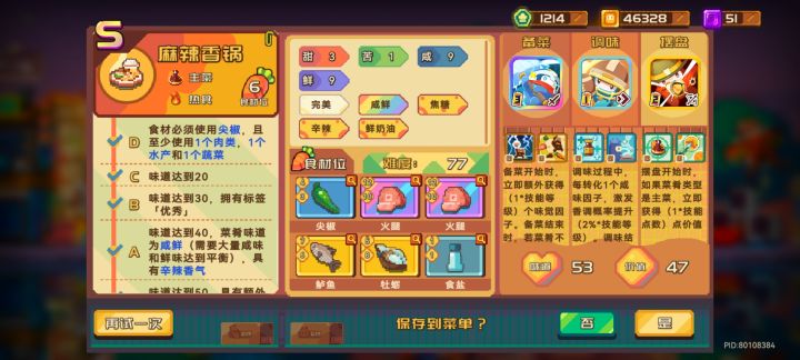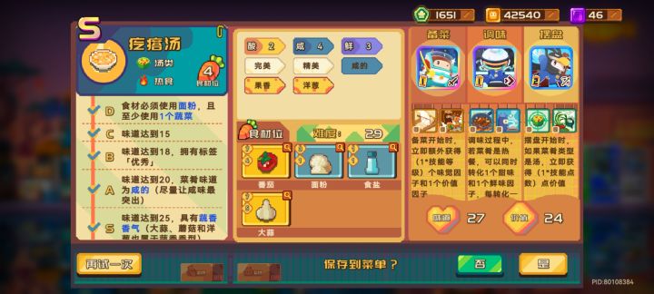 在砰砰食堂做菜总有种炼金术士做实验的感觉。。。不过不得不说大佬推荐的10级击剑手用来提价还是挺好用的