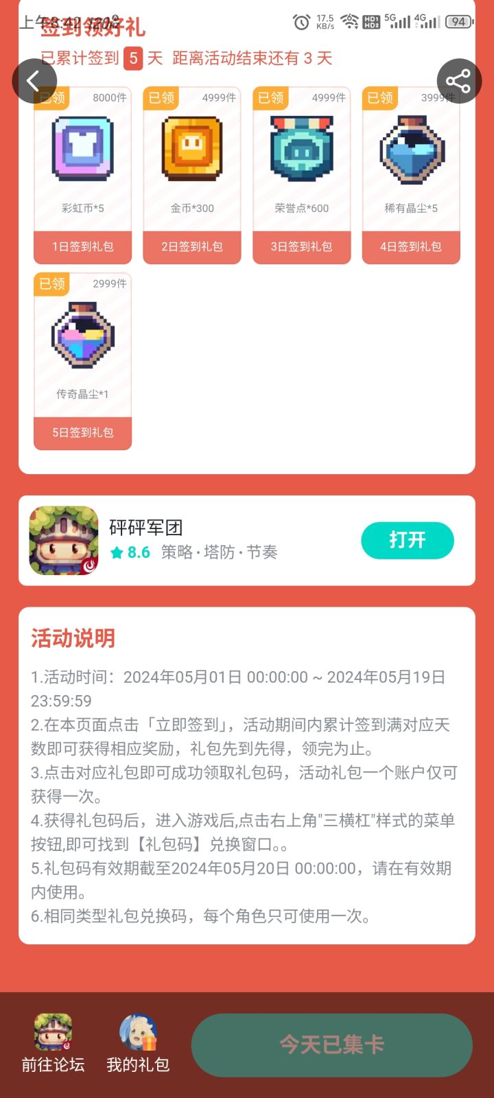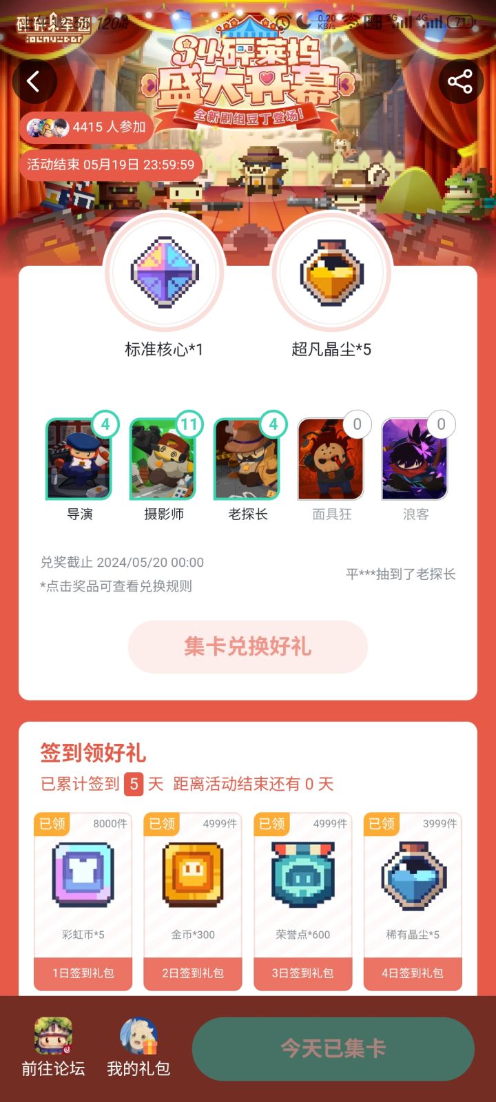 一共19天,一天不落,面具狂浪客是一个没有😓,又不是多么NB的东西爆率调那么低