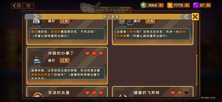 看不到食客,而且营业结束会直接卡住不动,只能退游戏重进,官方赶紧修啊