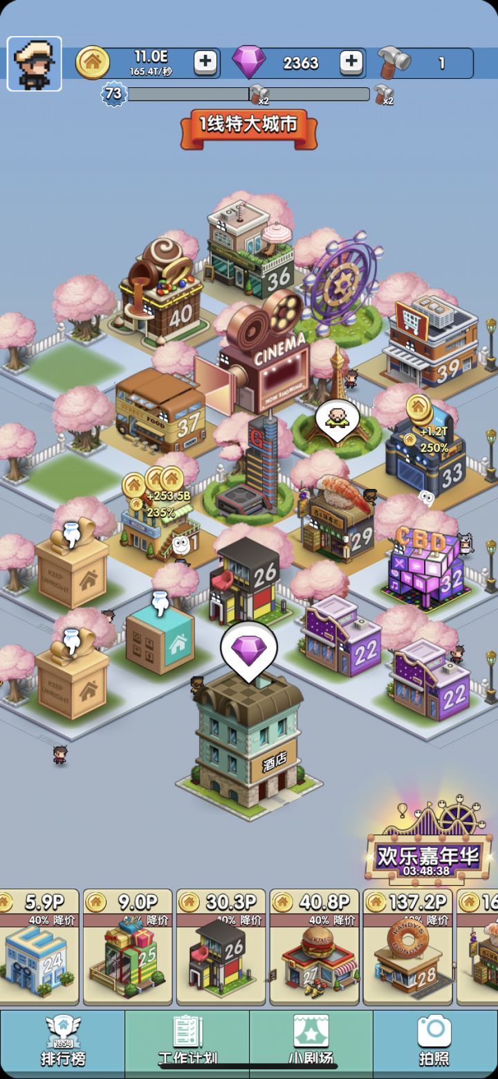 氪的月卡,主要是广告什么的实在太烦人目前64级3线大城市,从5万名开外肝到现在排名1600多(真不知道这个排行榜动不动就好几万名是怎么来的,有这么多人玩这个?)本质上是个收菜游戏,但玩法实在太单一了,除了点点点就不能开发点其他玩法吗?社交属性极其弱化,除了刷刷排行榜,基本0社交,好友什么的是不存在的希望下一步适当增强一下游戏的社交属性,丰富一点玩法,比如内置小游戏之类的,另外再优化一下吧,这