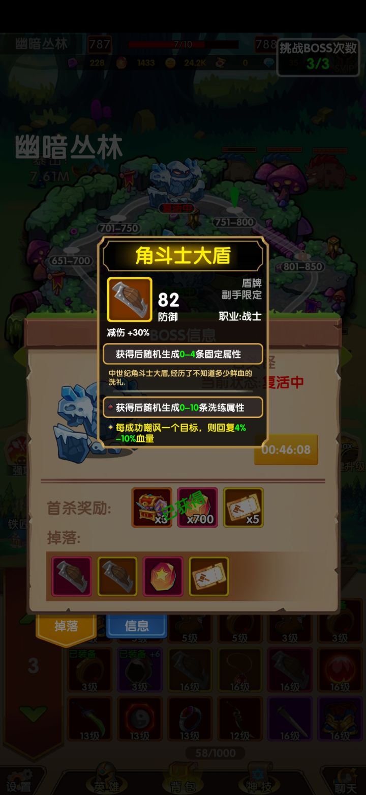 出问题了,一直处在787层上不去。不是打不过,是打过了层数还是787不变。还有一个是盾牌不显示属性也装备不了这个盾牌。这两个bug