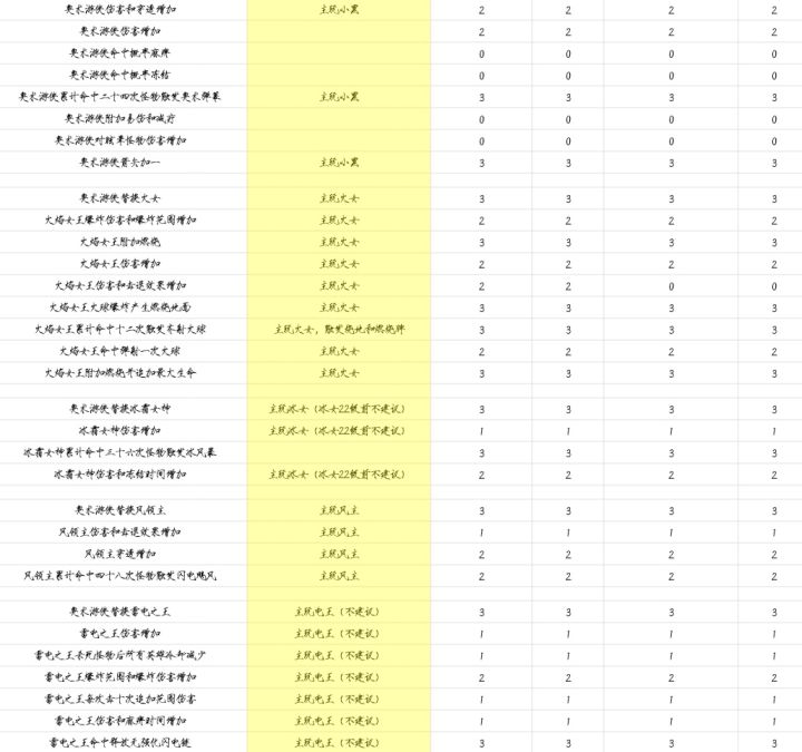 评分规则3:满足条件必带2:有用,可以带1:有用,但不多,没东西带了可以带0:没用仅代表当前版本的本人体验,可能会有误差。