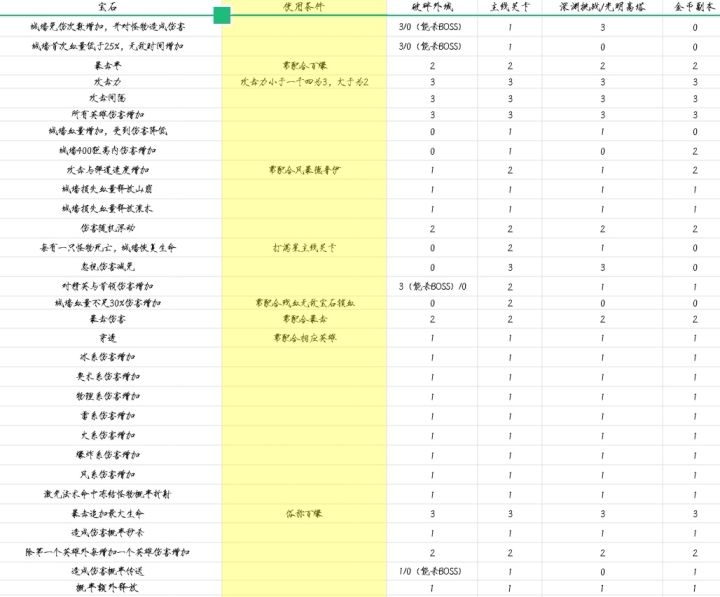 头部宝石:异常延时 城墙免疫 火女燃烧 城墙血量 攻击间隔衣服位置:异常延时 城墙免疫 冰王无视 城墙血量 攻击间隔鞋子位置:异常延时 传送 冰王cd 城墙血量 攻击间隔法杖位置:异常延时 忽视 城墙免疫 城墙血量 初始火女戒指位置:异常延时 秒杀戒 初始冰王 城墙血量龙卷百分比项链位置:异常延时 初始龙卷 穿透 城墙血量 火女百分比注意事项:红色秒杀戒指效果不太好,建议金色及以上在