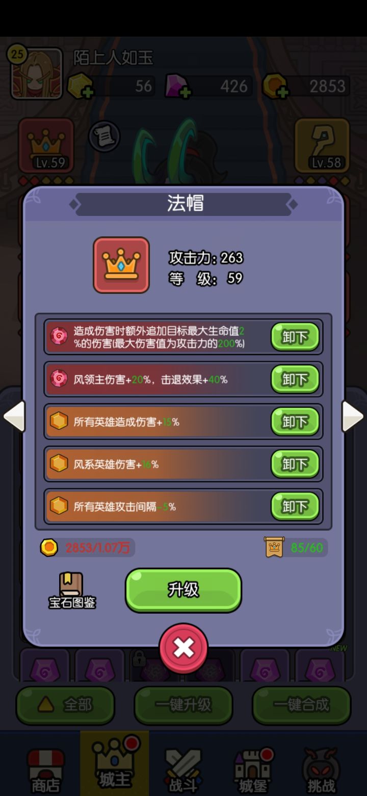 我走的主C是风领主,副C德鲁伊,冰疫之王打控制。武器戒指项链就是初始召唤这三个。如图只买了一个红白头(感觉有这个跟没有这个是两个游戏),无秒杀戒无传送鞋无百爆戒项链。买了德鲁伊时间宝石跟电风衣,其他宝石随机合。风领主:有红电风衣属于锦上添花(非必要核心),加击退的作用不太明显。技能选择龙卷风>攻击次数>真空>眩晕>乱流,开局5波能刷出两次攻击加龙卷风加攻击就比较稳了。德鲁伊:必佩核心时间宝石