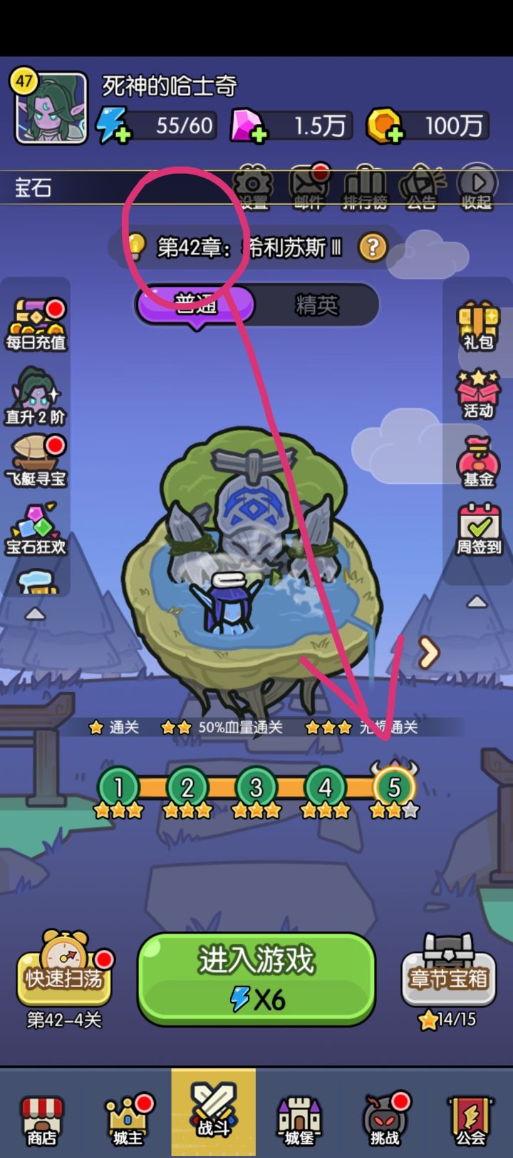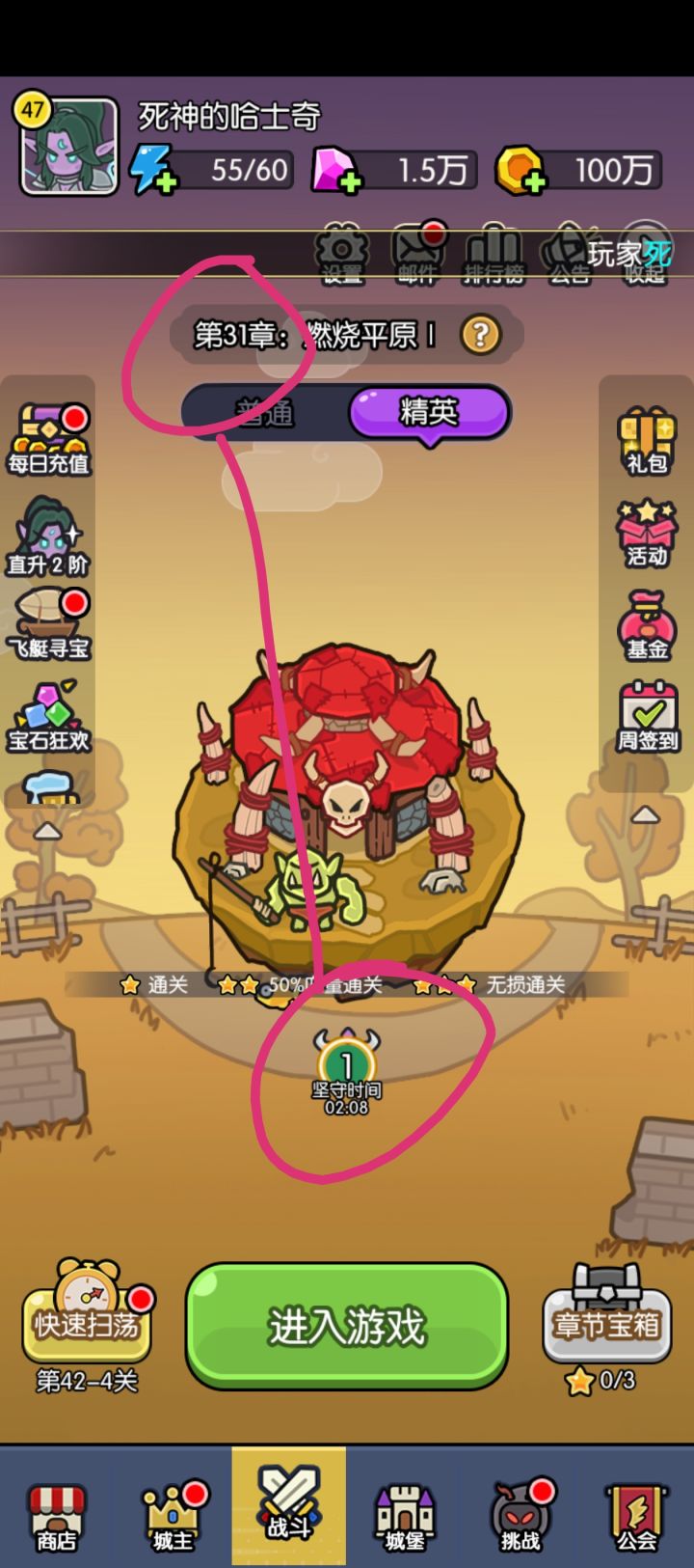如图,佛系扫荡,存了一个多月,现在主线42-5,精英31,看看这100w砸下去,能过几关,娱乐一下
