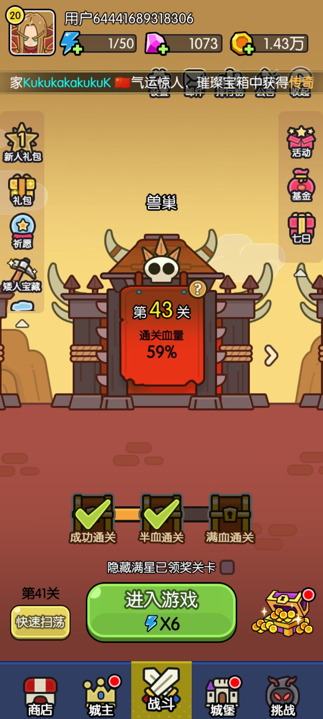 40%概率回复攻击力50%的血,僵持在这里,谁也打不死谁了