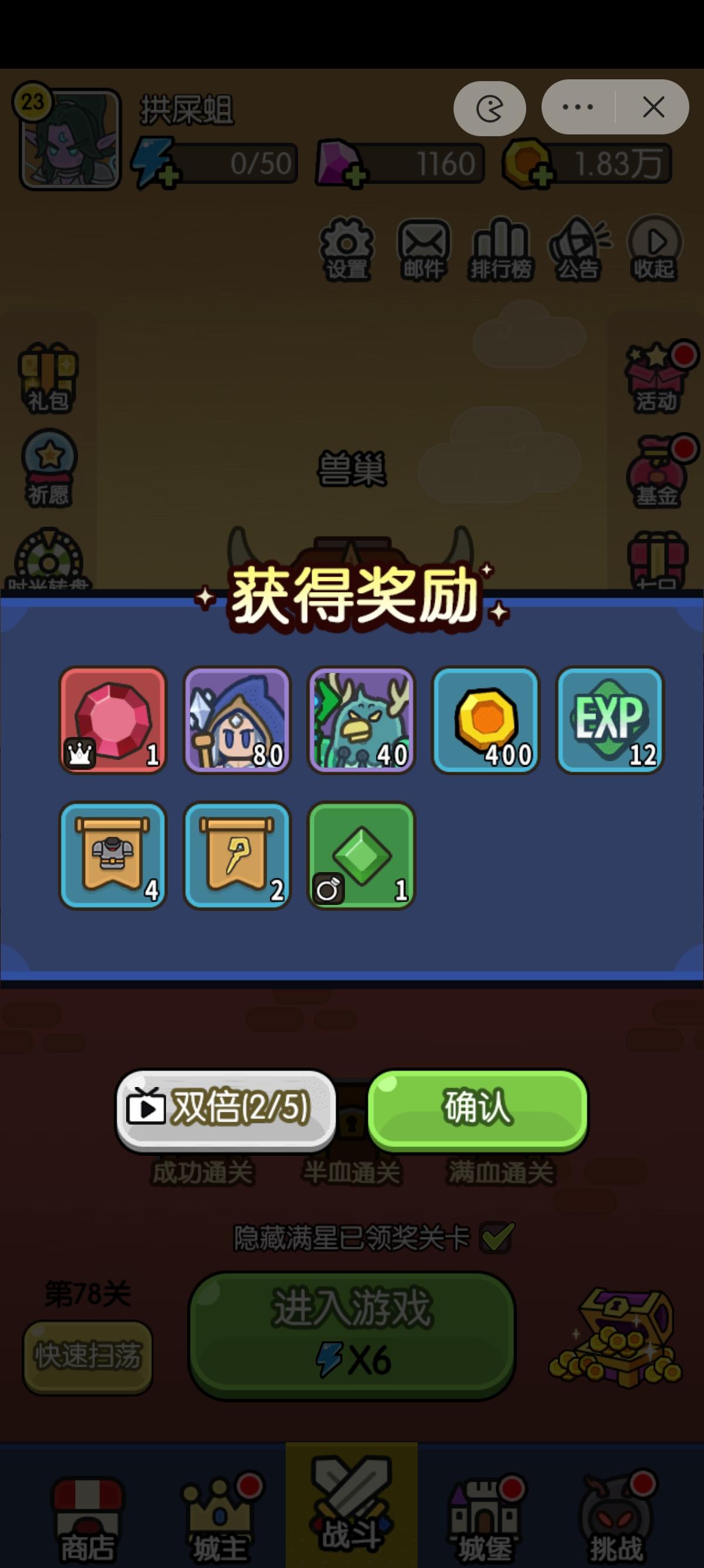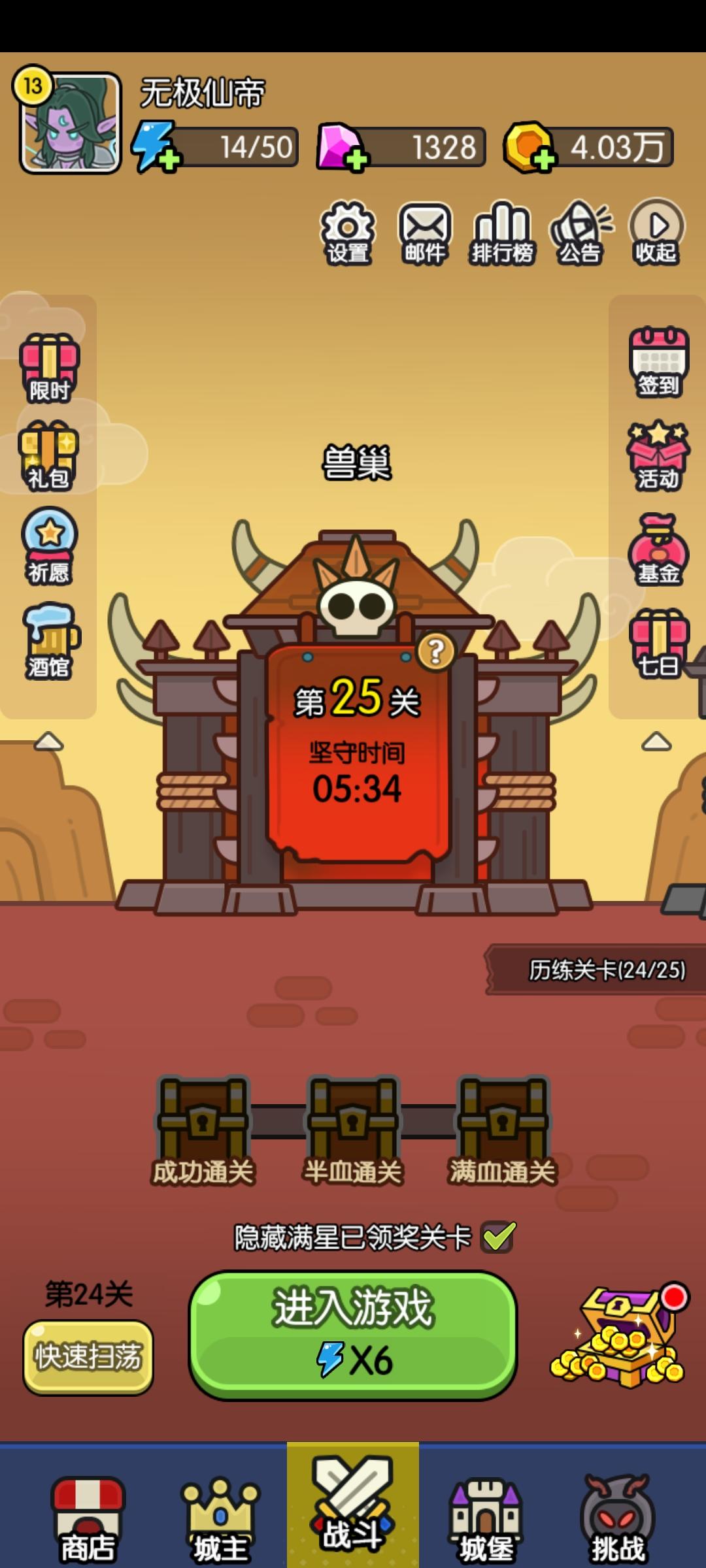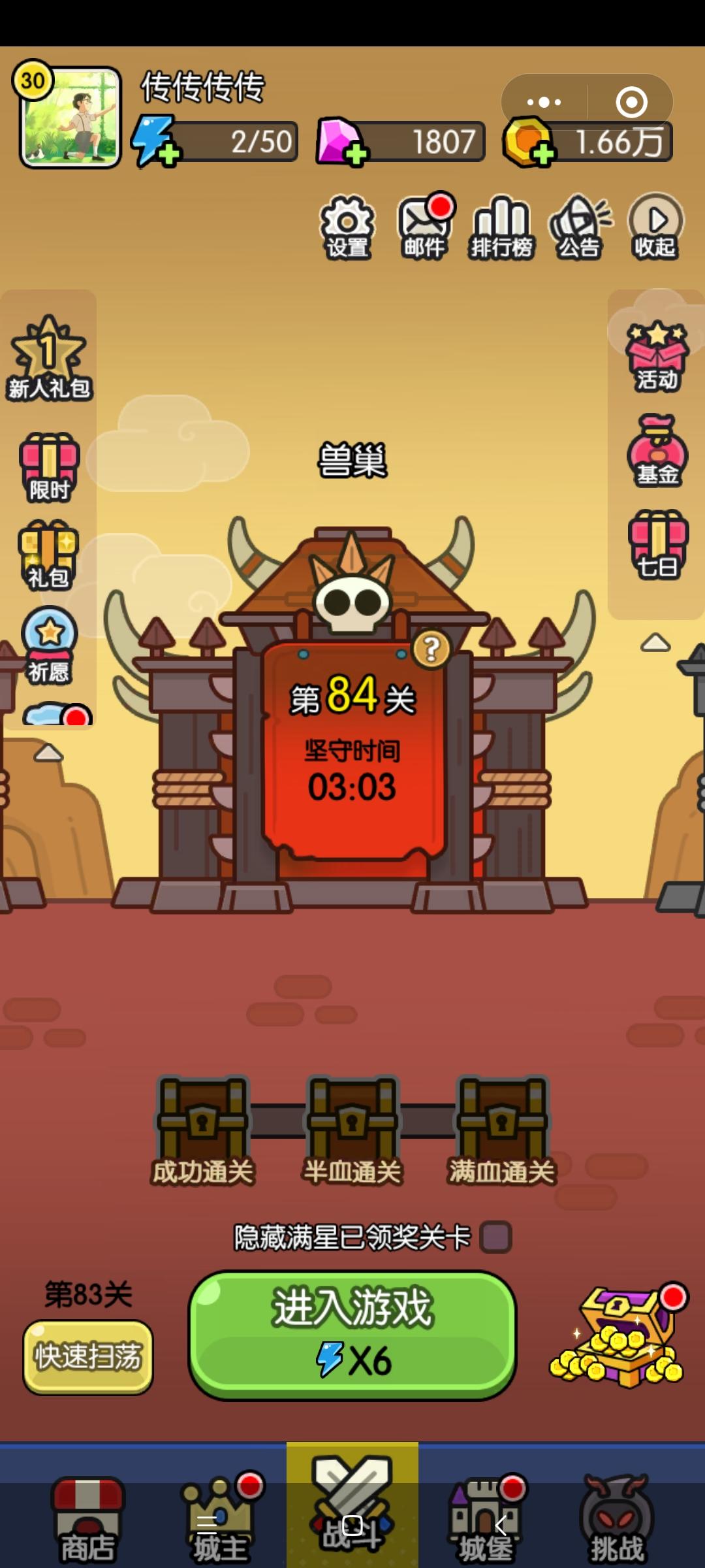 打卡活动。还是没有三星通关