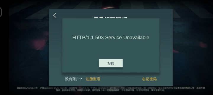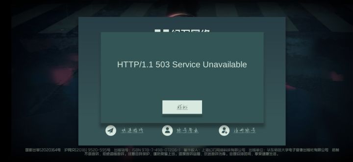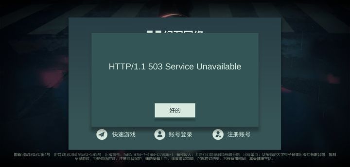 游戏进不去了,界面显示503