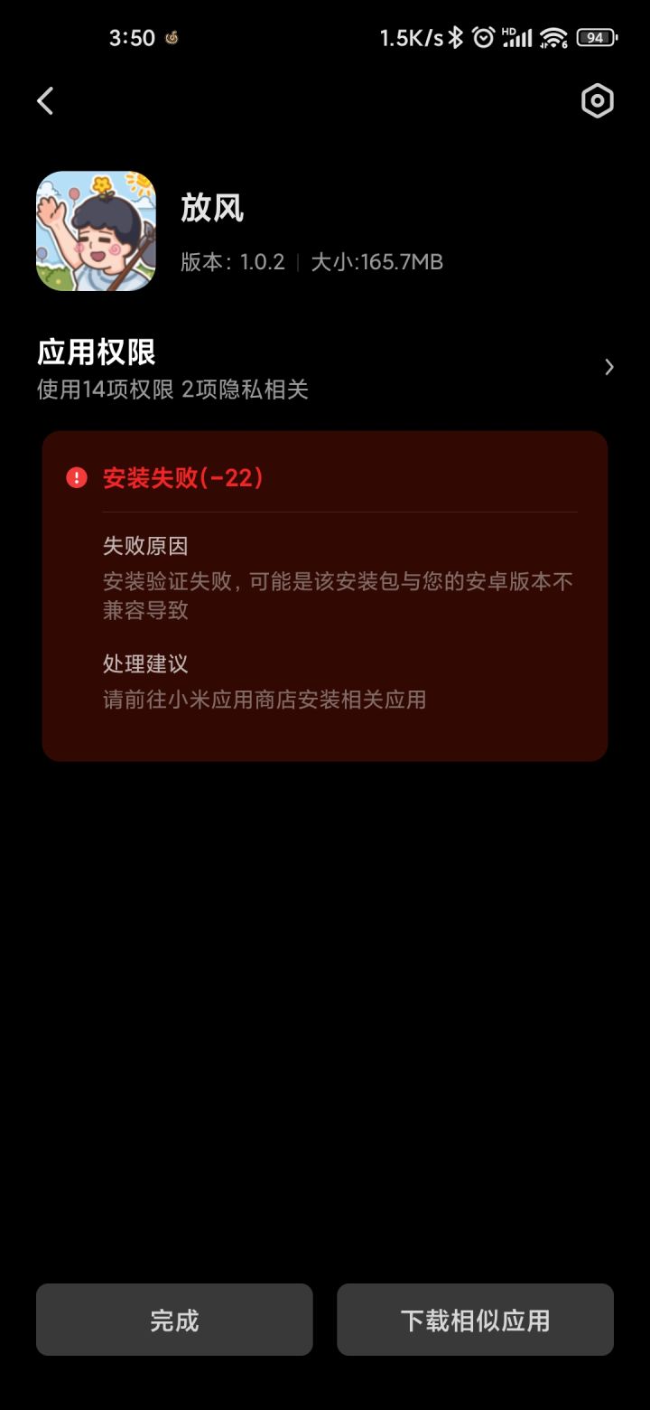 可以下载,但无法安装,手机系统是MIUI 13.0.4