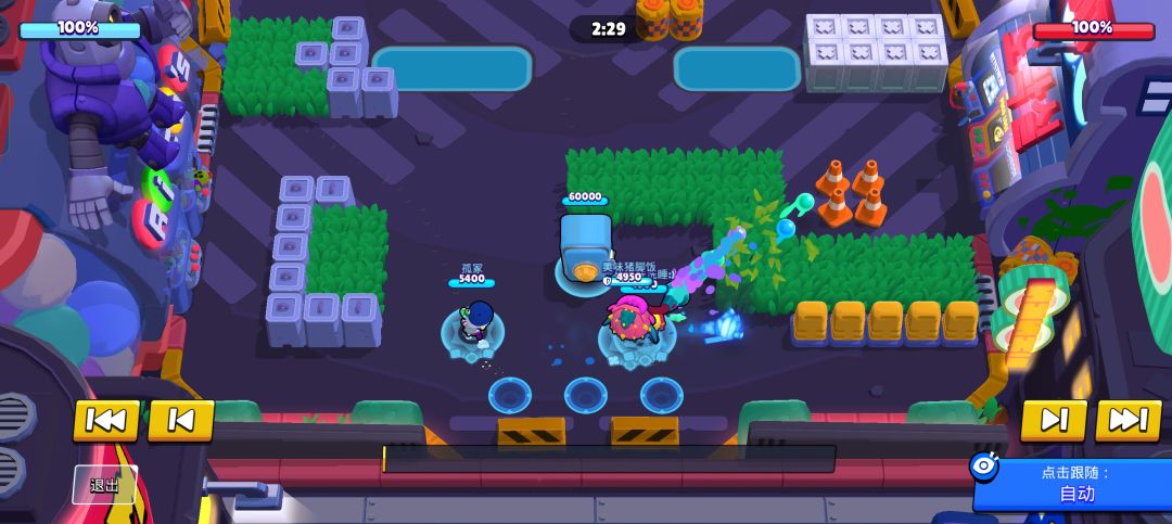 觉得有点意思的一局,这把ban了邦尼、卡尔和格罗姆(剩下的忘了)我方一选伊芙,对面出布洛克、贝尔,我预选佩佩又晃了下比比,想暗示下我们三号位做好BP,别让对面最后选个比比什么的counter我们三,然后三号位给我推荐了潘妮,他选的奥蒂斯,对面选的柯尔特伊芙抢的很好,开局走右压住对面,不会出现对面卡在中路掩体的问题,潘妮奥迪斯虽说手不如对面长,但血量优秀,可以前压走位打中距离作战对面猴哥正常开