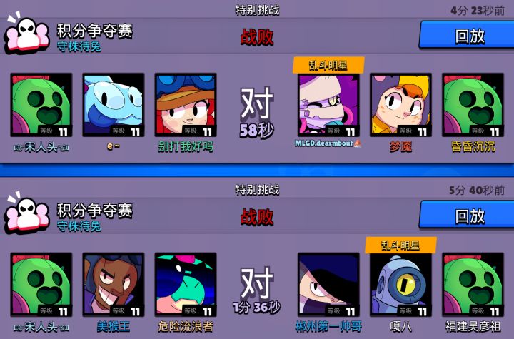 这让我拖家带口地怎么赢?^_^我也就是个普通玩家,之前挑战赛野排也就三个人里面塞一个万杯以下的,现在直接塞两个。我还是强烈建议官方把挑战赛门槛抬起来,比如搞个万杯以上才能打,毕竟这游戏已经没什么新人玩了,况且大叫一万杯才出新手村的玩家大有人在。何不好好照顾老玩家的游戏体验?☞不过这把确实照顾对面:)☜我本来不想来吐槽的,但在第二把玩的时候越想越气,真的对游戏很失望😔毕竟这不是一两次的概率事件,是每次挑战赛都是如此!