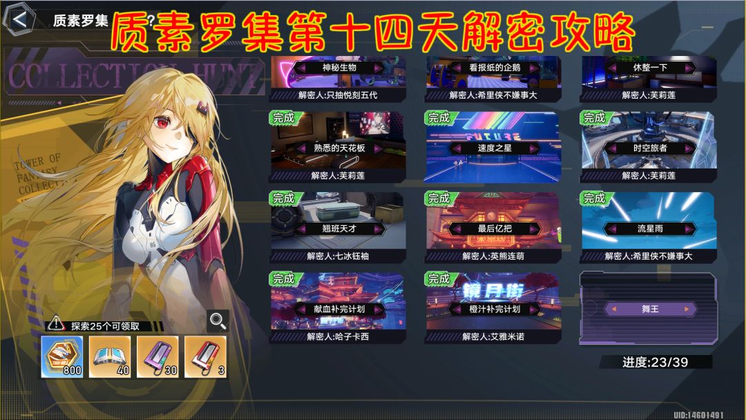 幻塔质素罗集第十四天解密攻略!献血补完计划和橙汁补完计划