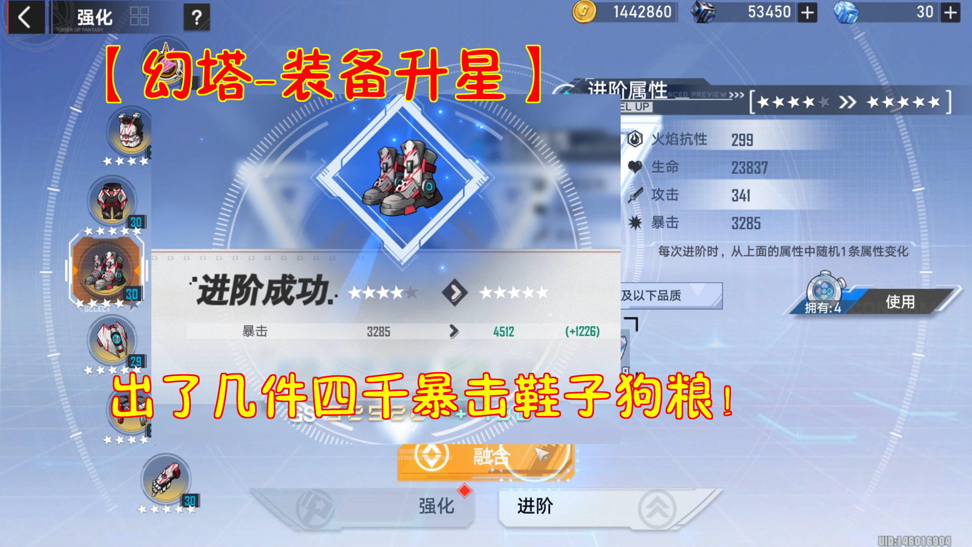 【幻塔-装备升星】出了几件四千暴击鞋子狗粮!