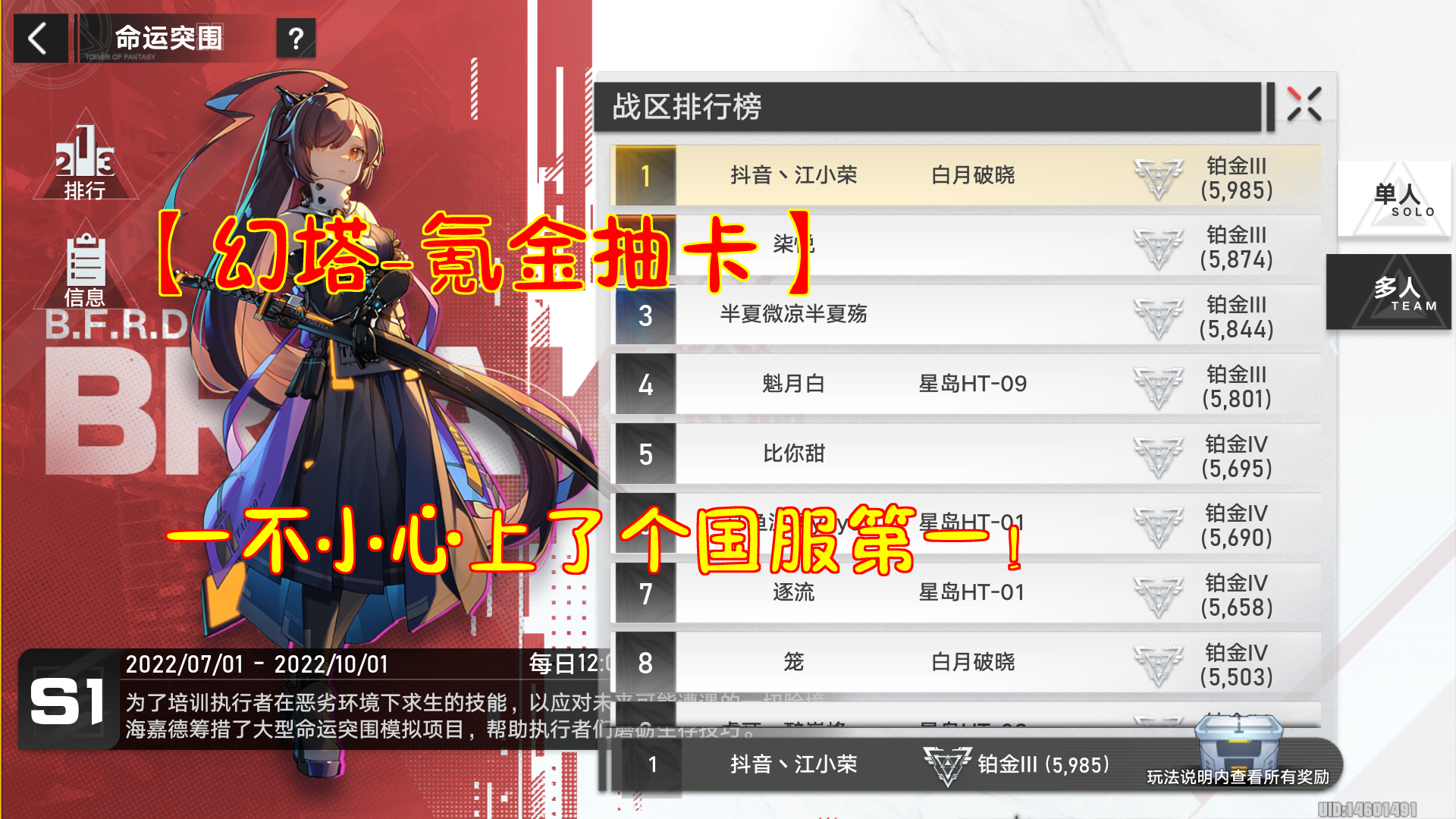 【幻塔-命运突围】一不小心上了个国服第一!
