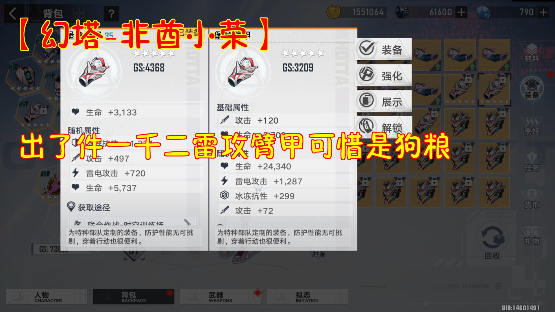 【幻塔-非酋小荣】出了件一千二雷攻臂甲可惜是狗粮!