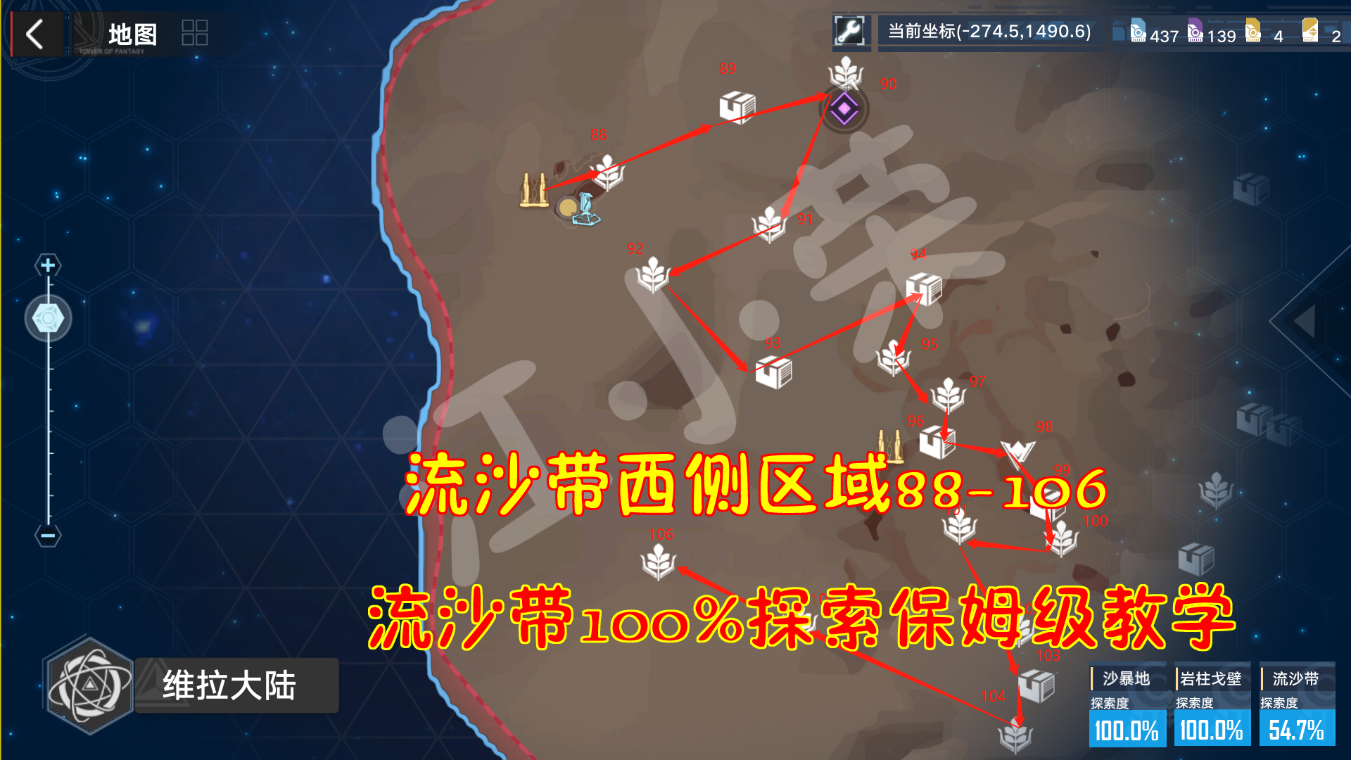 幻塔:流沙带西侧区域88-106!流沙带100%探索保姆级教学#我在维拉大冒险#