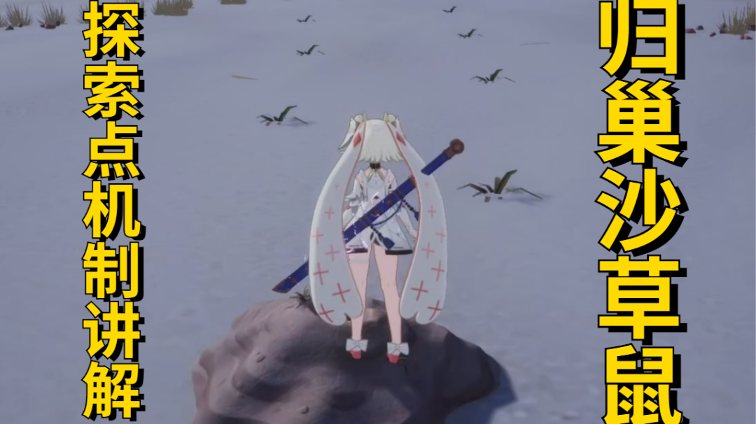 归巢沙草鼠 大家好。4.25维拉时空版本上线后,更新了很多探索点机制。我会依次给大家带来讲解。 如封面所示的会发光的土堆即为探索点。我们需要在附近找到且跟随枯草标记,找到沙团, 现在还不能看到沙草鼠的样子,只是一推沙子。此时,我们带着沙团缓慢回到探索点就可以啦。 视频最后是图片概括!