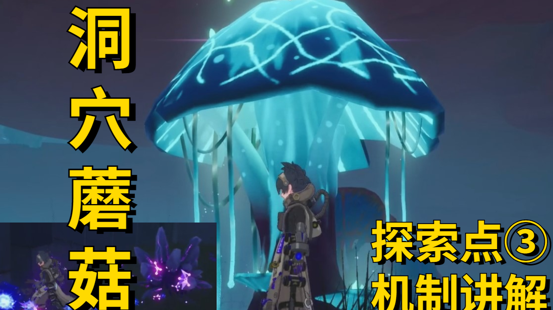 大家好。本次给大家带来洞穴蘑菇的探索点机制讲解。蘑菇需要自身周围的一些物质来使其长大,我们就可以在蘑菇附近找的如图所示的紫色物体。靠近物体时,我们身边就会出现紫色球。这个时候我们再返回蘑菇那里,来让它汲取养分。 注意噢,一次是不够的,我们需要来回跑三次。三次下来我们就可以完成这个探索点了。培养好以后,变得巨巨巨漂亮,发光的大蘑菇! 视频结尾也有图片概括,完整请看视频。