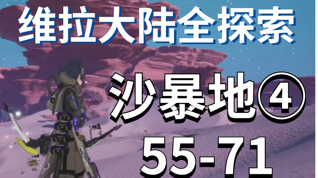 大家好。本次带来沙暴地④/55-71/镜城旧址下侧。 从某个门-镜城旧址西开始,往地图一边走。从一边至另一边,一路探索过去。依旧是奉献上位置点标记图。感谢大家一路的支持!完整请看视频。 维拉全图探索百分百正在持续更新中! 岩柱戈壁全部探索点已经开荒完毕!沙暴地正在续更中~ 后续会更新完,制作不易,求求支持呀~求三连求转发 每小节视频开头都有详细的位置标记图,视频里是领跑讲解详细内容。 直接拿去抄作业! 维拉大陆沙漠地貌全探索开荒合集 一、岩柱戈壁 ①波澜谷西至东上 ②波澜谷西至东下 ③研究所到试炼场 ④咸水绿洲周边 ⑤魔爪绿洲附近 ⑥溶螺洞窟表层 ⑦-1溶螺第一洞窟 ⑦-2溶螺第二洞窟 ⑧溶螺第三洞窟+遗漏点补充 ⑨清剿名单/精英怪+风景点 二、沙暴地 ①人工绿地附近 ②斯拉特峡谷周边 ③镜城旧址上侧 ④镜城旧址下侧