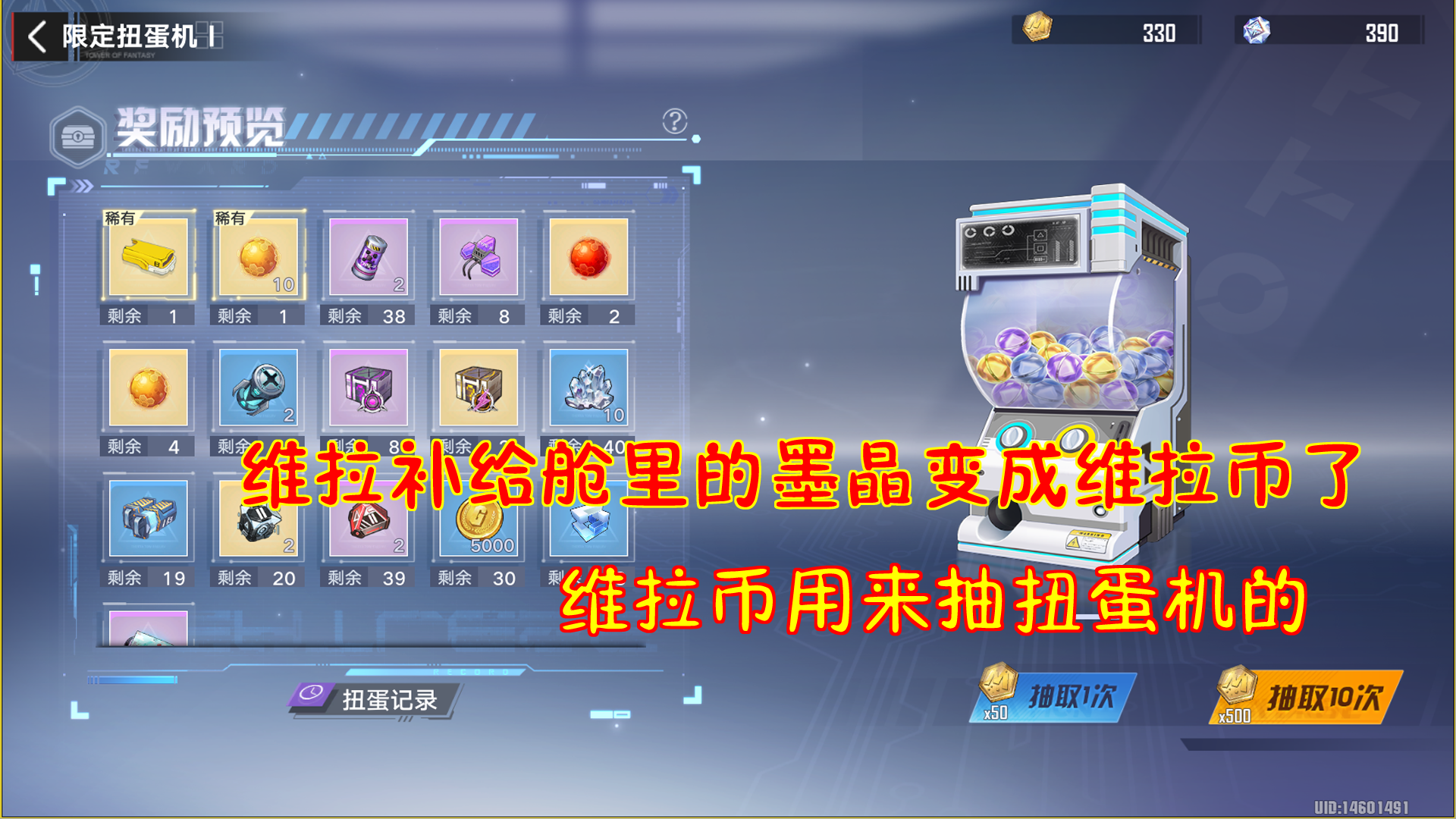 幻塔:维拉补给舱里的墨晶变成维拉币了!维拉币用来抽扭蛋机的