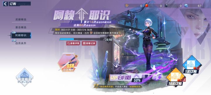 目前买了大月卡,刚过来玩了一周,出了5个SSR,上来系统送的就出了阿赖,后面80抽里出了三个金,基本成型,开心