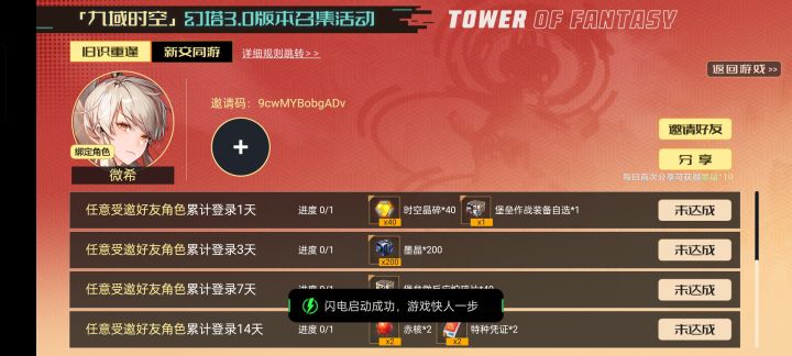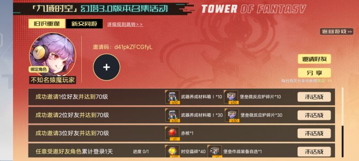 新人,老玩家回归九域时空邀请码,填了领赤核