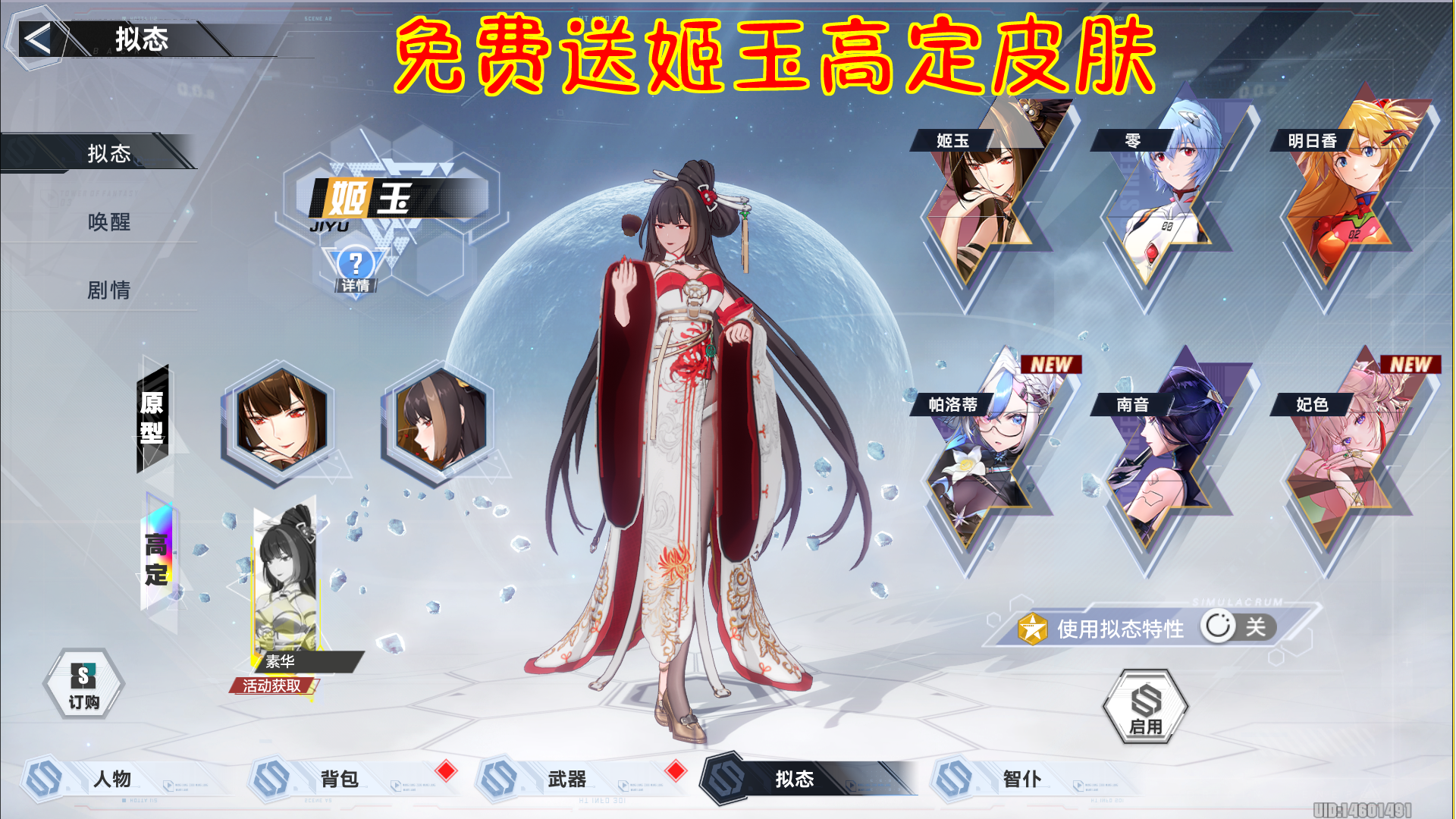幻塔免费送姬玉高定皮肤!新增两个饰品!
