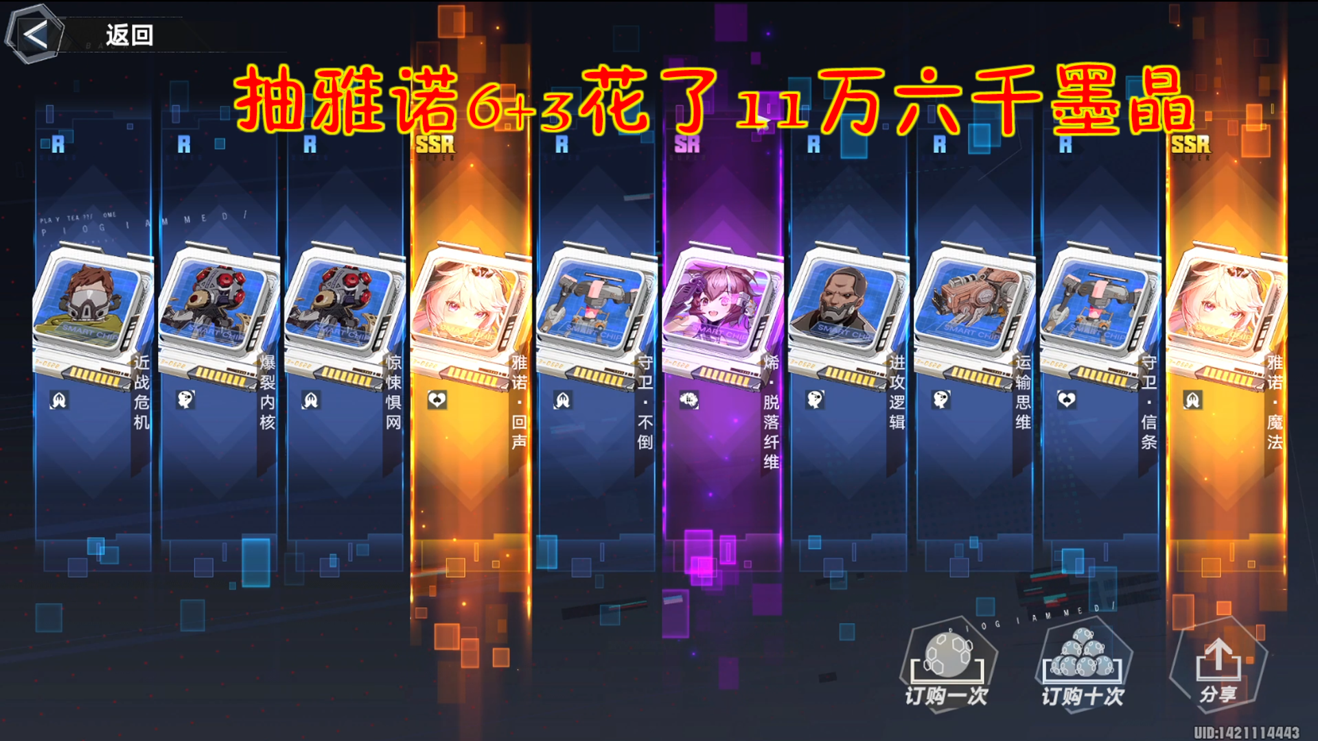 幻塔抽雅诺6+3花了11万六千墨晶!幸好最后出双黄蛋了!