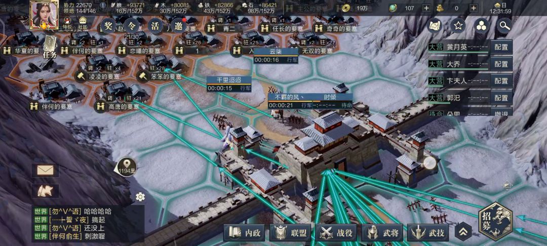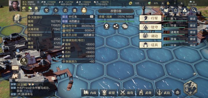 前言:上回说到,扬州【以兵丶涅槃】与西蜀【战丶夜闻秋风】于荆州首战,争夺楚王坛控制权。最终以【战盟】败北荆州落下帷幕。【战盟】虽然占据先机但依旧首战失利。随后【战盟】于江陵建国,国号:越。(时间不详)当前局势:7月30日白天双方依旧于楚王坛谷口推推乐,【兵盟】空闲之余收复两白城南新、长沙。至23:00左右,【兵盟】已突破谷口防线攻至楚王坛右侧。31日,11:00【兵盟】调动长沙突袭丹水、中