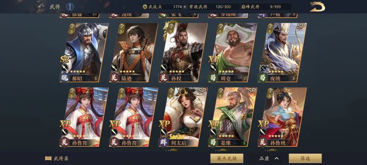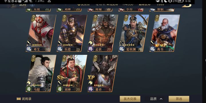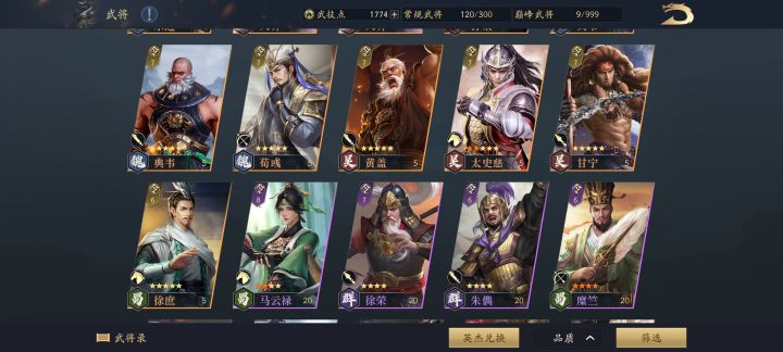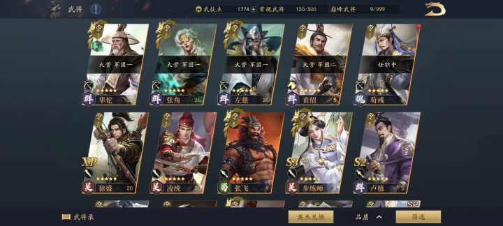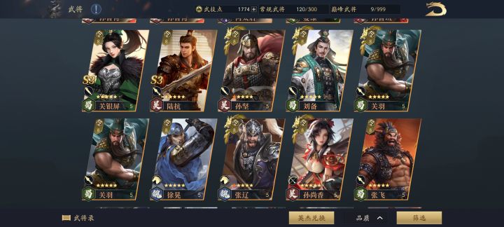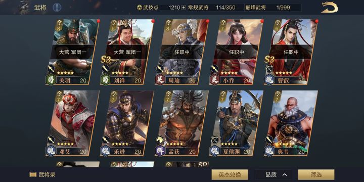 玩了快一个月了,现在橙将有十几个,紫将大部分都有。但是s武技基本没有,橙将也没有材料觉醒,现在出羽林军,根本打不了,八级地耕战九级地勉勉强强。很疑惑,这游戏的思路是不是积累式攒将领啊?得有大量的觉醒材料之后,再说配将的事?
