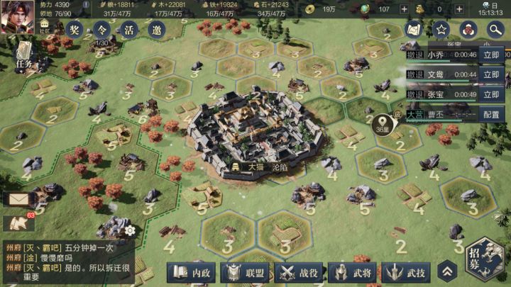 联盟可以扩展很多新的玩法,还可在联盟中找到大佬指点迷津,并且完成各类个人及联盟目标还有丰厚的奖励加入联盟中不仅能获得盟友们的帮助,而且联盟可以借道,在盟友的要塞中驻防,在大地图中可以看到联盟的版图和成员分布等情况。赛季玩法是联盟玩法的一种扩展,首先在不同阶段会有单人和全服的目标供你挑战,赛季中玩家可以在大地图上看到占领的城池和战略版图。联盟占领一定数量的城市还可以获取武将招募内容中的奖励,并