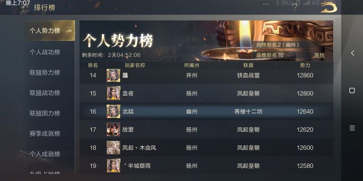 首先亮图。接着我上次的写吧,开区第五天,幽州第二,全服第16。0氪玩家。按照我之前说的是简单度过开局前两三天的方法,能让你的势力值过9000而且基本上稳定在第一梯队。这个时候很多玩家会着急,因为这个时候肯定有氪金大佬已经在打六级地了。往往这个时候很多人会去尝试。但是本人用亲身惨痛教训告诉你们。。。兵力没过1w5不要去碰六级地,就算一定要打至少也要1w3以上,而且必须是两队。就这样你的战损大概率